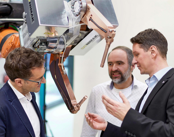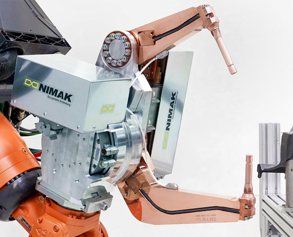 Het compacte ontwerp van onze innovatieve motorreductor-eenheid — gecombineerd met een hoge koppeldichtheid, stijfheid en dynamiek — stelde NIMAK in staat een compleet nieuw lastangsysteem te ontwerpen: De galaxy®GUN verbetert de productiviteit van lasprocessen aanzienlijk. Maar daarmee houdt het niet op. Dankzij een snelle dynamische krachtopbouw kunnen nu ook nieuwe en verschillende materialen gelast worden.